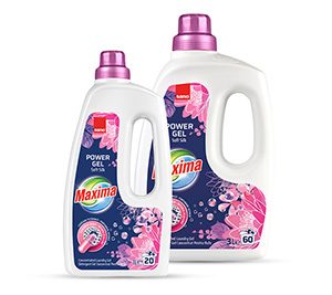 - *Takie same rezultaty czyszczenia przy dozowaniu o połowę mniejszym niż w przypadku skoncentrowanego żelu do prania Maxima Blue Blossom i Soft